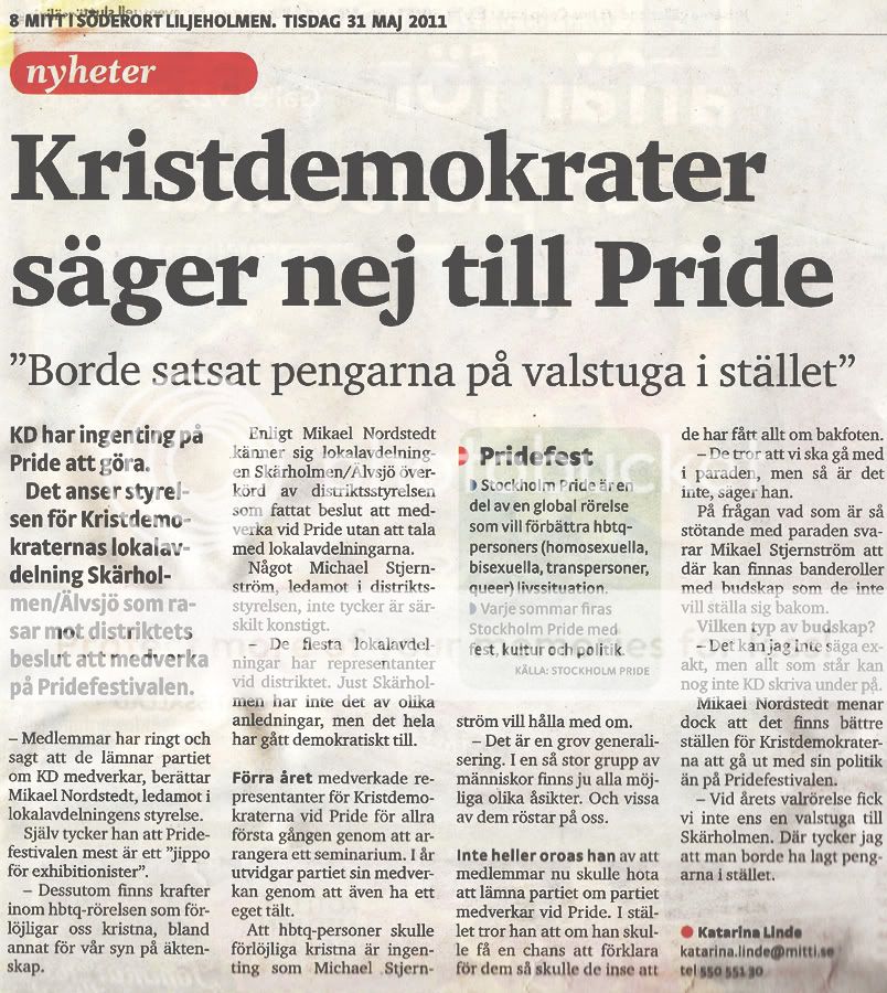KD:s (icke)deltagande på Pride 2010.